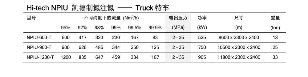 采用平衡对置式多缸氮气压缩机,保证氮气输出压力,可满足任何油井作业工况的需要