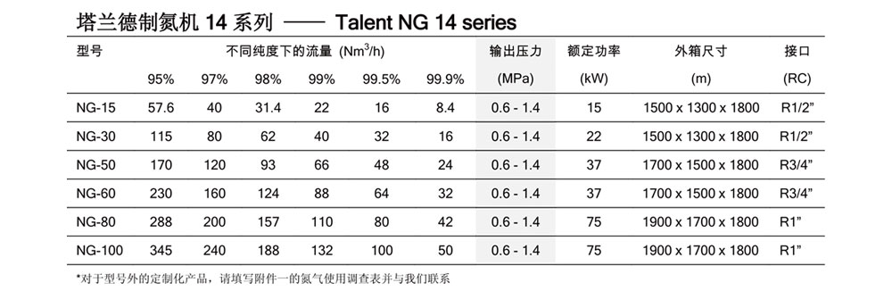 用户不同在分别对空气压缩机、油水分离器、干燥器和制氮机进行分别设计、选型、采购和安装工作,只需按照塔兰德一体式制氮机的参数表,选取合适的型号,便可一步到位,实现现场高质量氮气的生成,综合固定设备投资业相应减少,更具经济性。