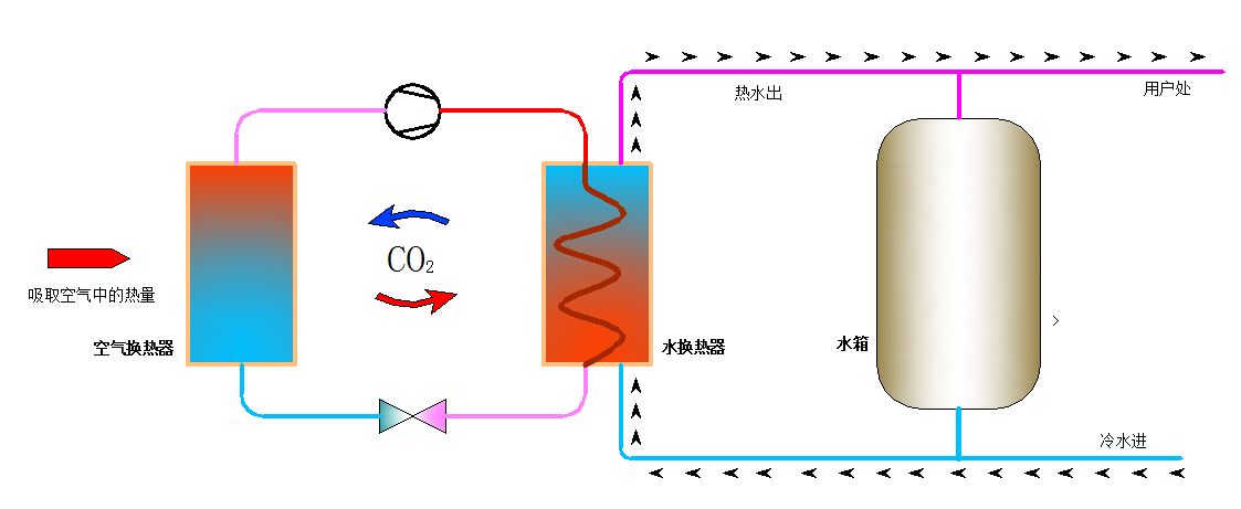 节能环保高效的二氧化碳空气源热泵,告别温室气体排放、告别燃煤锅炉、告别地热井,CO2天然冷媒,出水温度最高可达90℃,工作环境温度最低达-40℃,效率高达4.0,安装简便可单机使用也可多机组合。